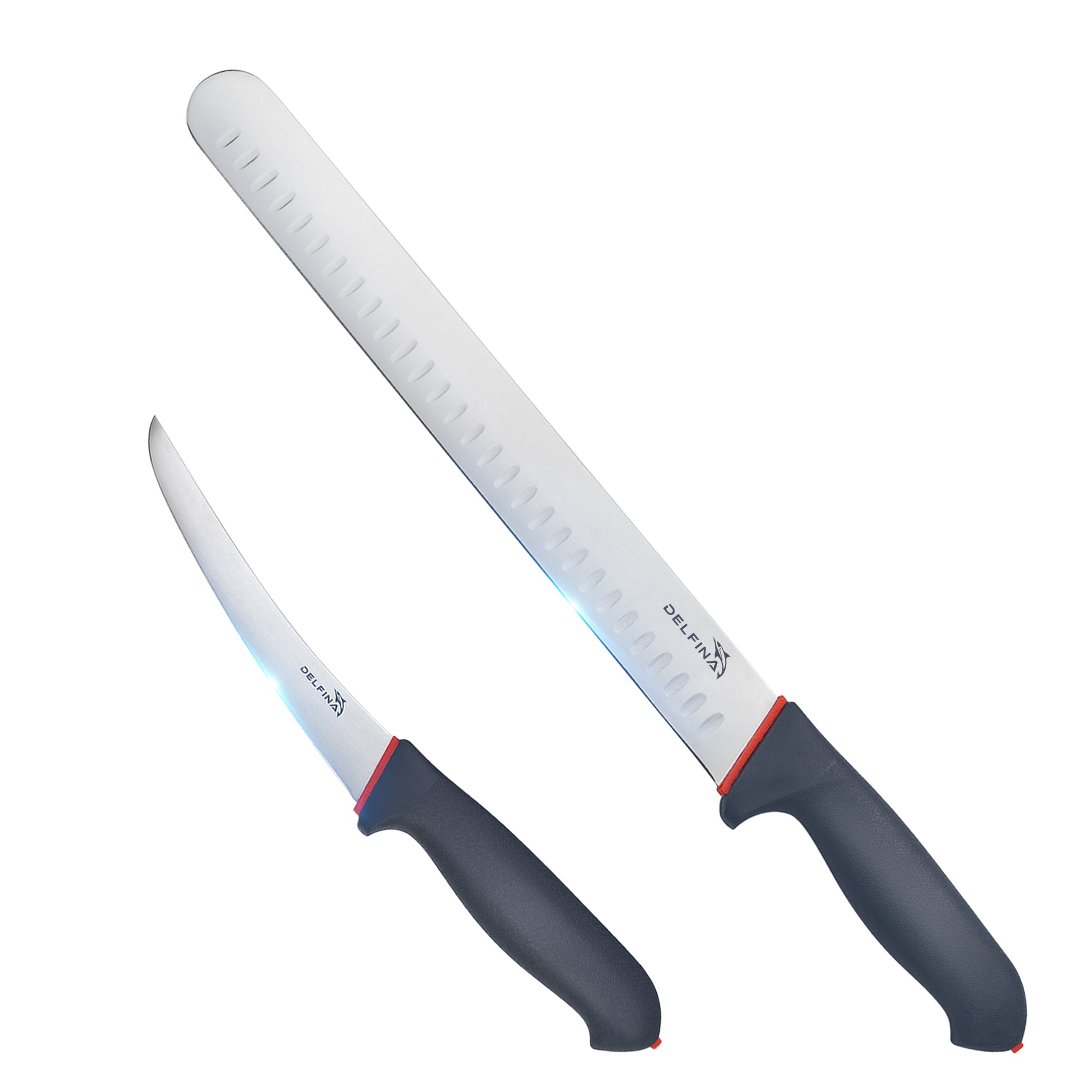 - Application: The DELFINA BBQ SET ideal for toting blades to the grill, restaurant, bar, cafe, cooking school , vacation home, catering site, reception, reunion and more. All knives designed with even weight distribution for control and accuracy, make your cooking easier.