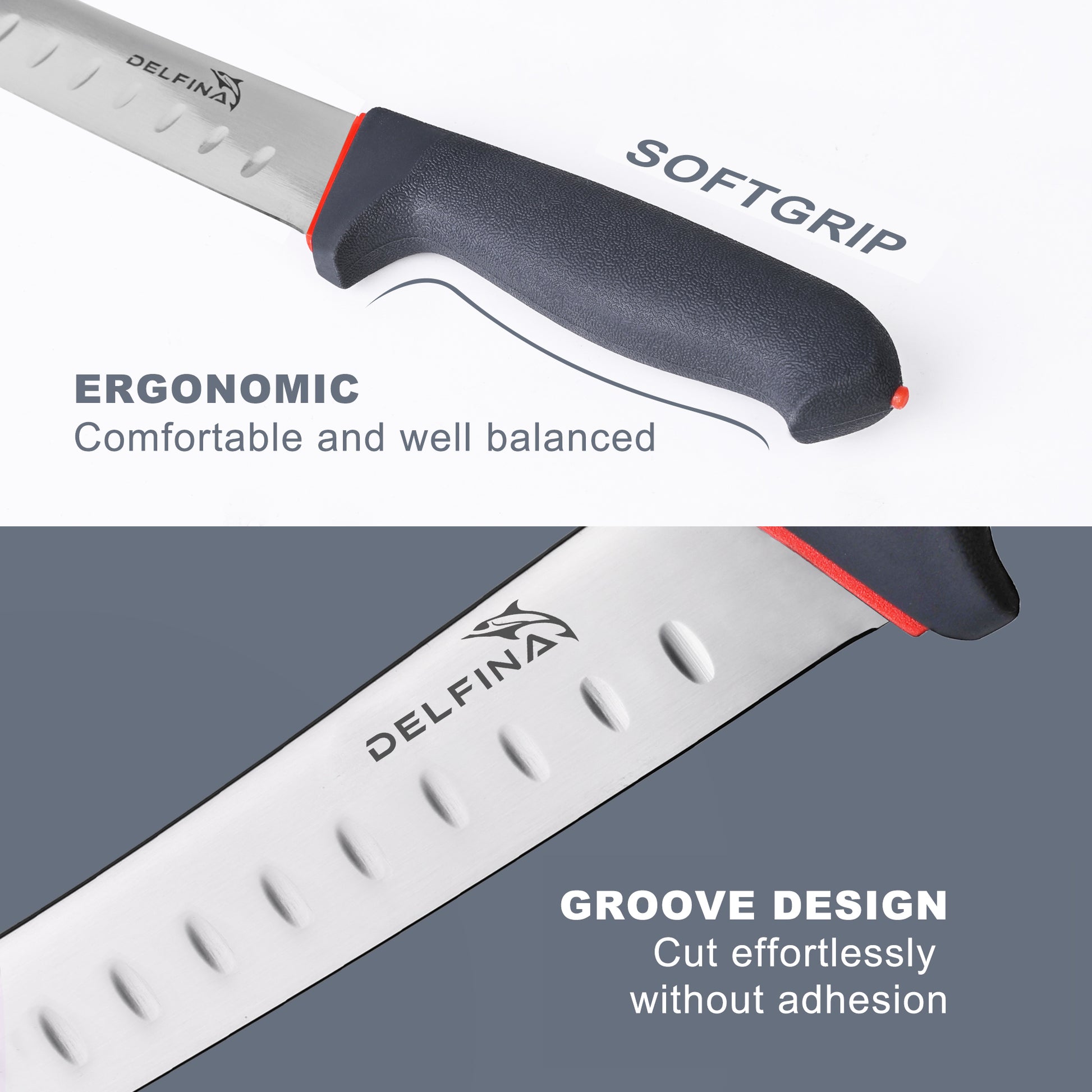 - DELFINA BREAKING KNIFE is a good option for butcher. This knife is good for thick cuts, to cut the fat off the meat; Also suitable for large restaurants to cut thick steak, fish processing; This knife is also great for you if you want to work with your turkey at home.