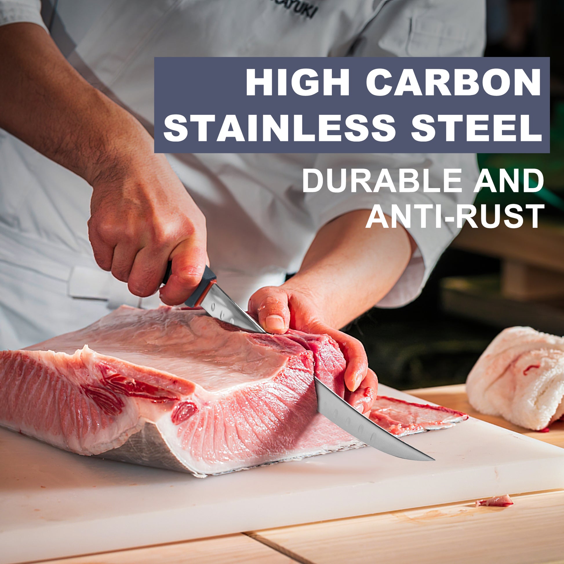 - DURABLE & WELL BANLANCED - The knife is made of high carbon stainless steel. High hardness, corrosion resistance. The breaking knife is further optimized to increase the carbon and chromium content and enhance the stability of the internal mechanism, so that it does not bend or wobble when cutting meat.