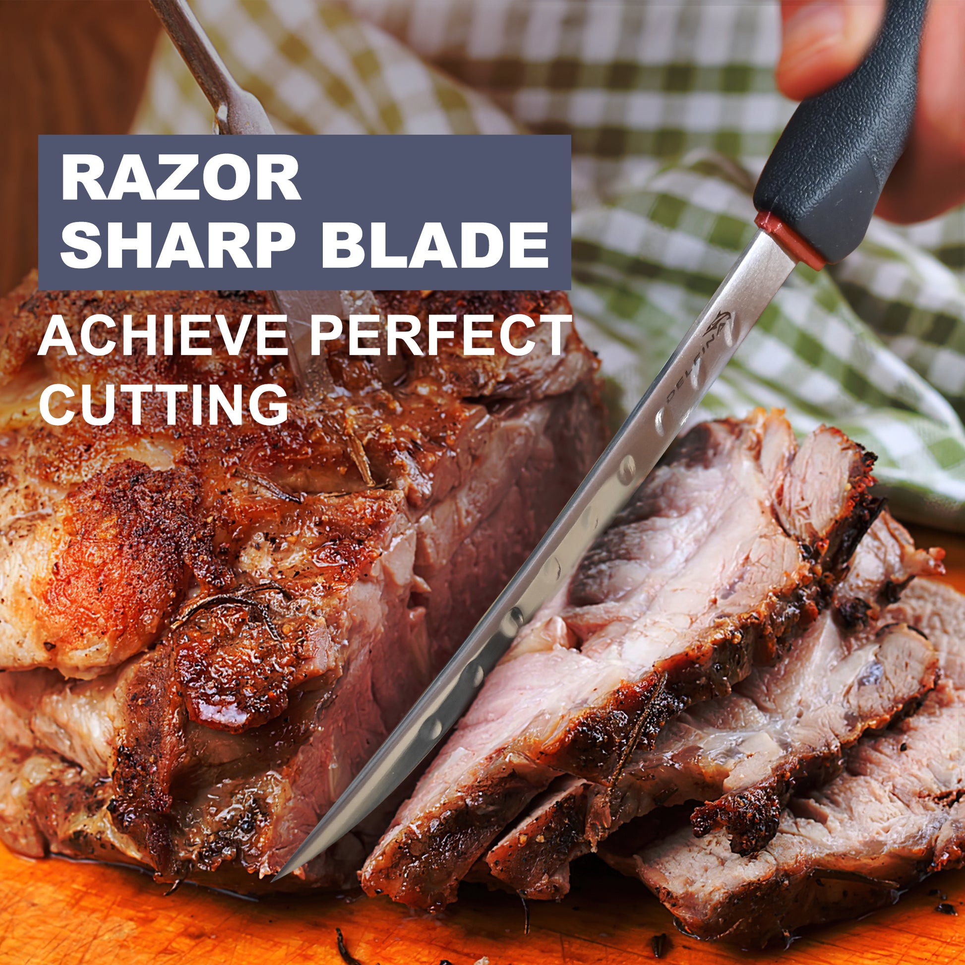 - DURABLE & WELL BANLANCED - The knife is made of high carbon stainless steel. High hardness, corrosion resistance. The breaking knife is further optimized to increase the carbon and chromium content and enhance the stability of the internal mechanism, so that it does not bend or wobble when cutting meat.