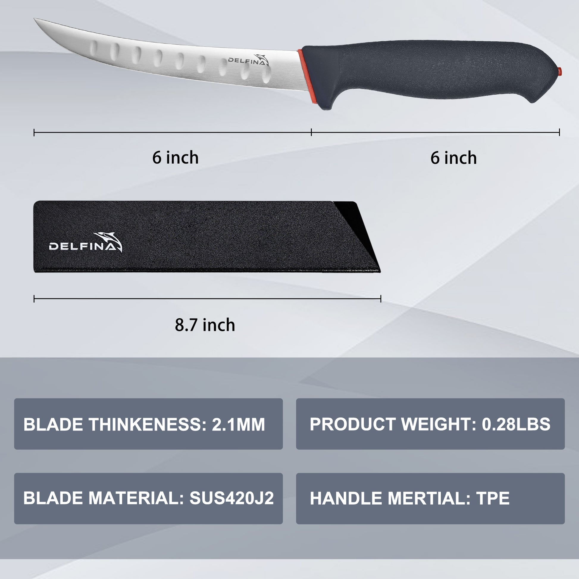 - DELFINA BREAKING KNIFE is specially designed for the needs of the kitchen. You can cut anything easily with this knife. The curved blade provides excellent cutting results and is designed for butchers and professionals, so be careful when using this knife. It's really sharp!