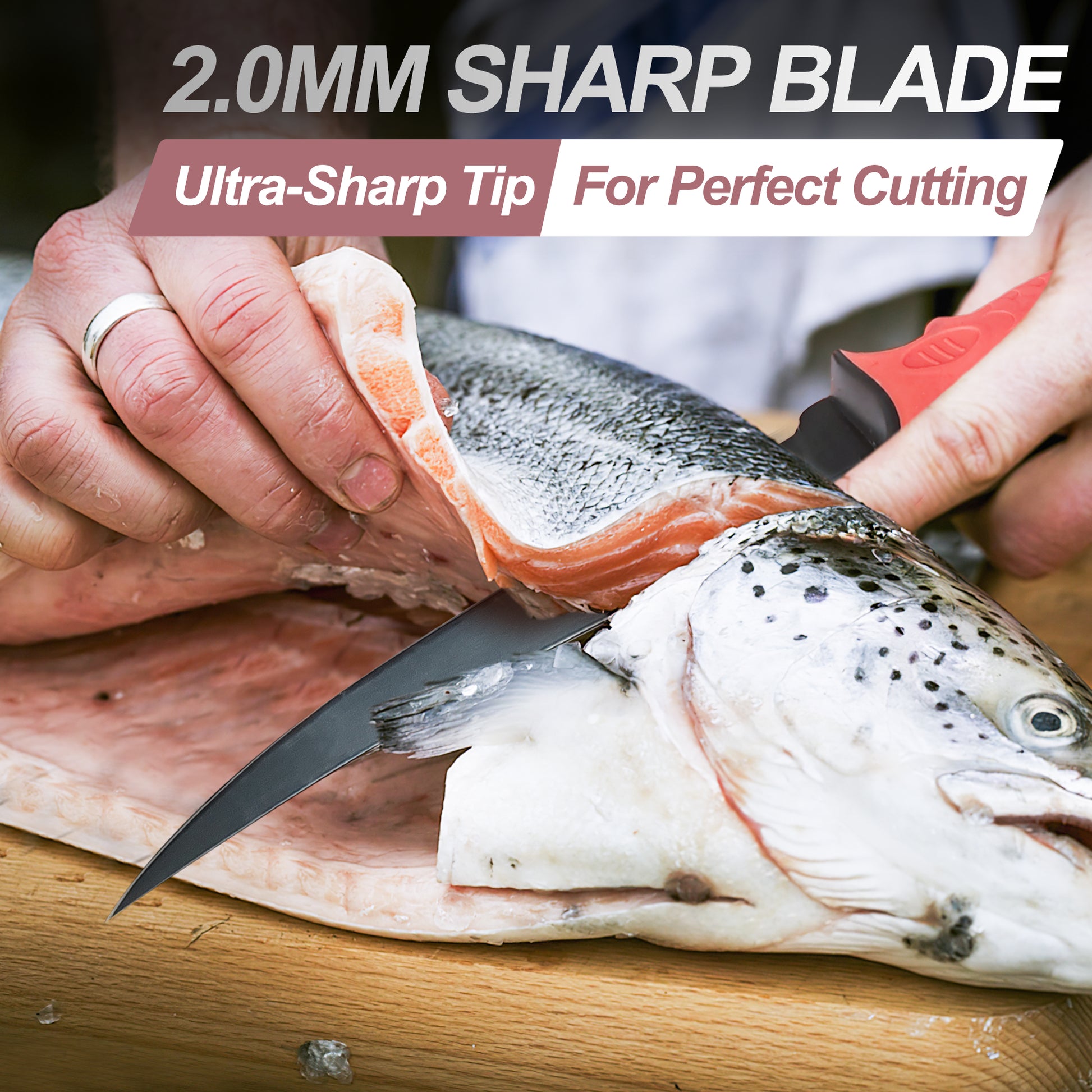 - SHARP & FLEXIBLE: The fillet knife features a 2mm thick X50CrMoV15 stainless steel blade,that is both strong and flexible;delivering excellent edge retention, sharpness, corrosion and wear resistance.Providing great precision for filleting, boning, trimming, and slicing meat of different animals - giving you perfect fillets every time.